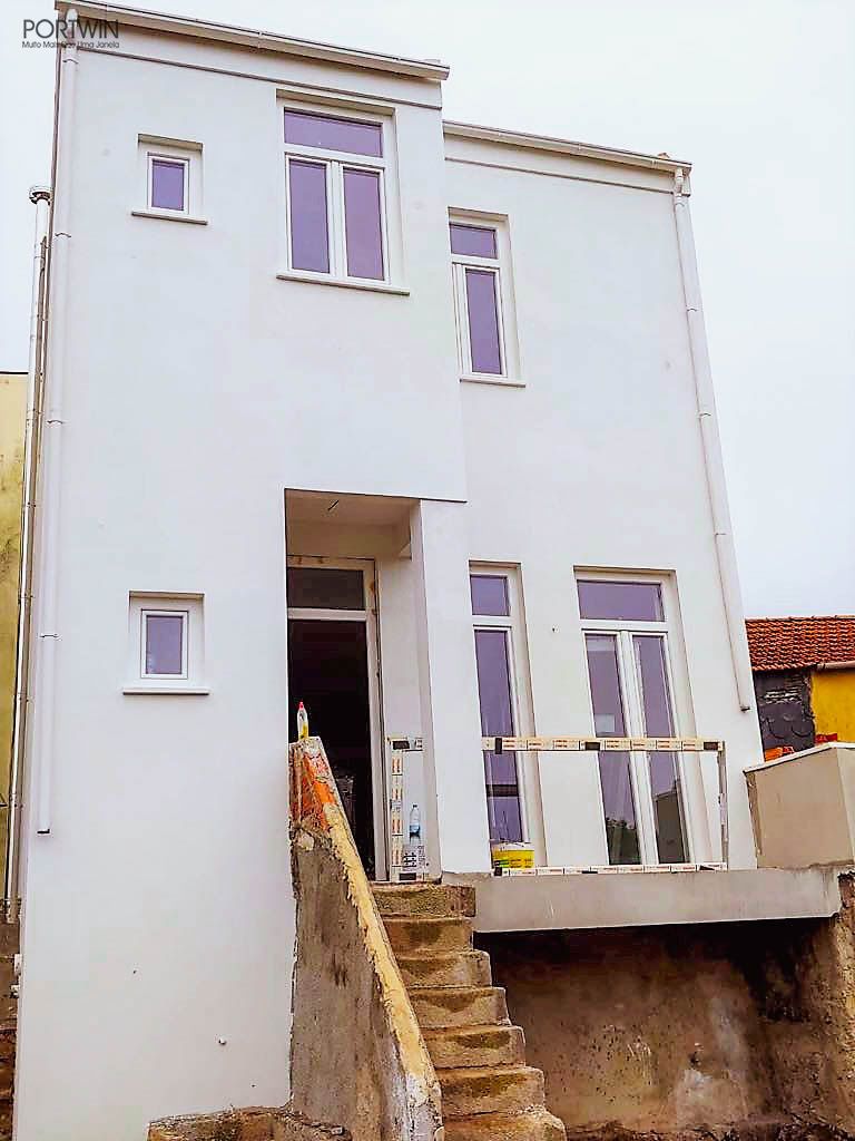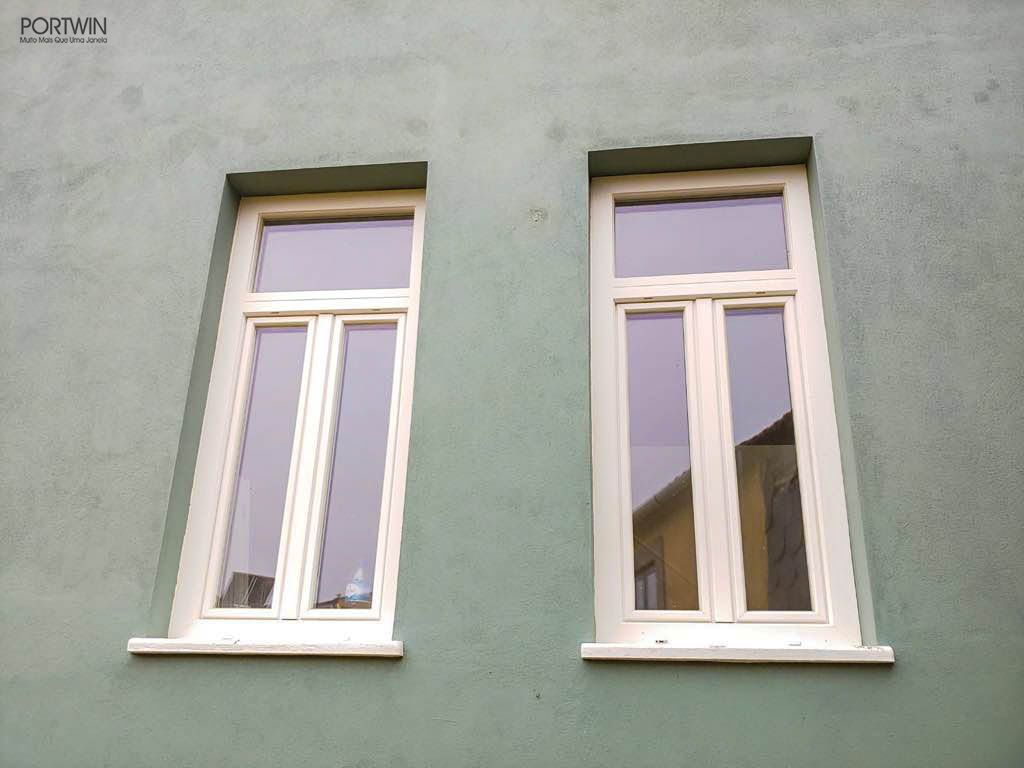 Montagem FINSTRAL,série FIN 72 com folha CLASSIC LINE na cor branco gravado e separador intercalar na mesma cor. Vidro duplo baixo emissivo 30mm.
